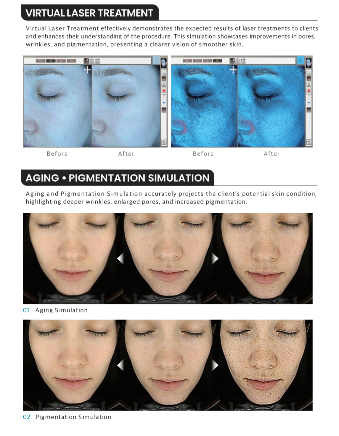 Real-time results — scans and analyzes the face in minutes, helping clients visualize their skin condition instantly.